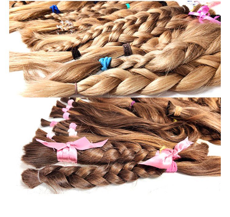 Bitte oberhalb des obersten Haargummis schneiden.